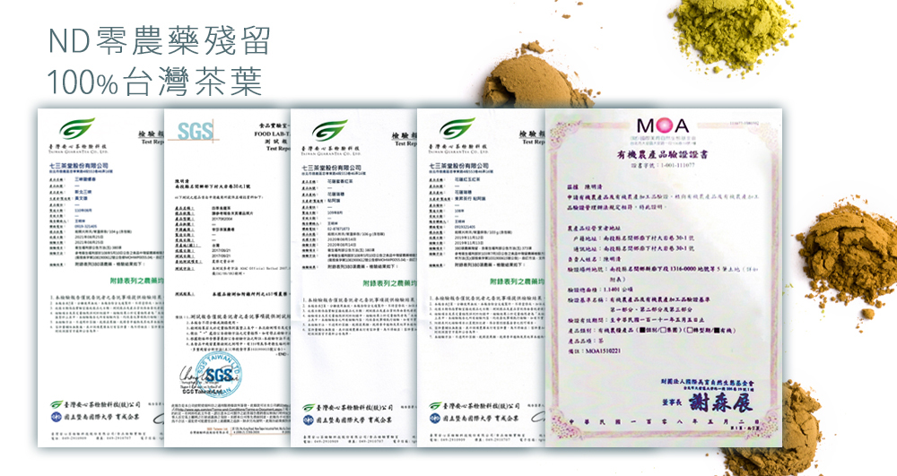 在最佳季節,採摘友善農法栽種的茶菁茶葉為原料。循傳統精湛工藝,製成各式台灣特色茶。通過檢驗後,再進行抹茶等級般的極細密研磨,才能成為 七三茶堂7teahouse 喫茶粉系列。