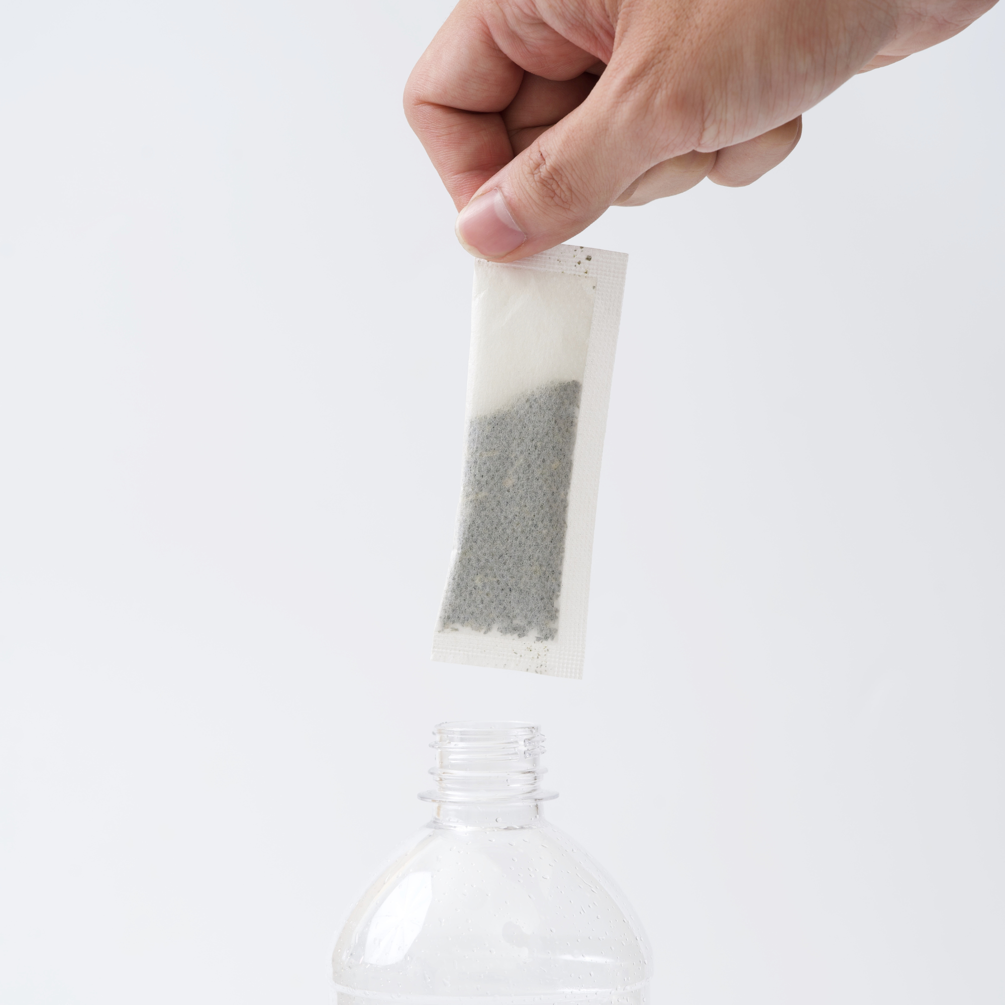 ❶ 茶包一個、400ml冷泡茶瓶一個。❷ 倒入「常溫冷水」至滿。❸ 等待15~30分鐘,即可飲用。