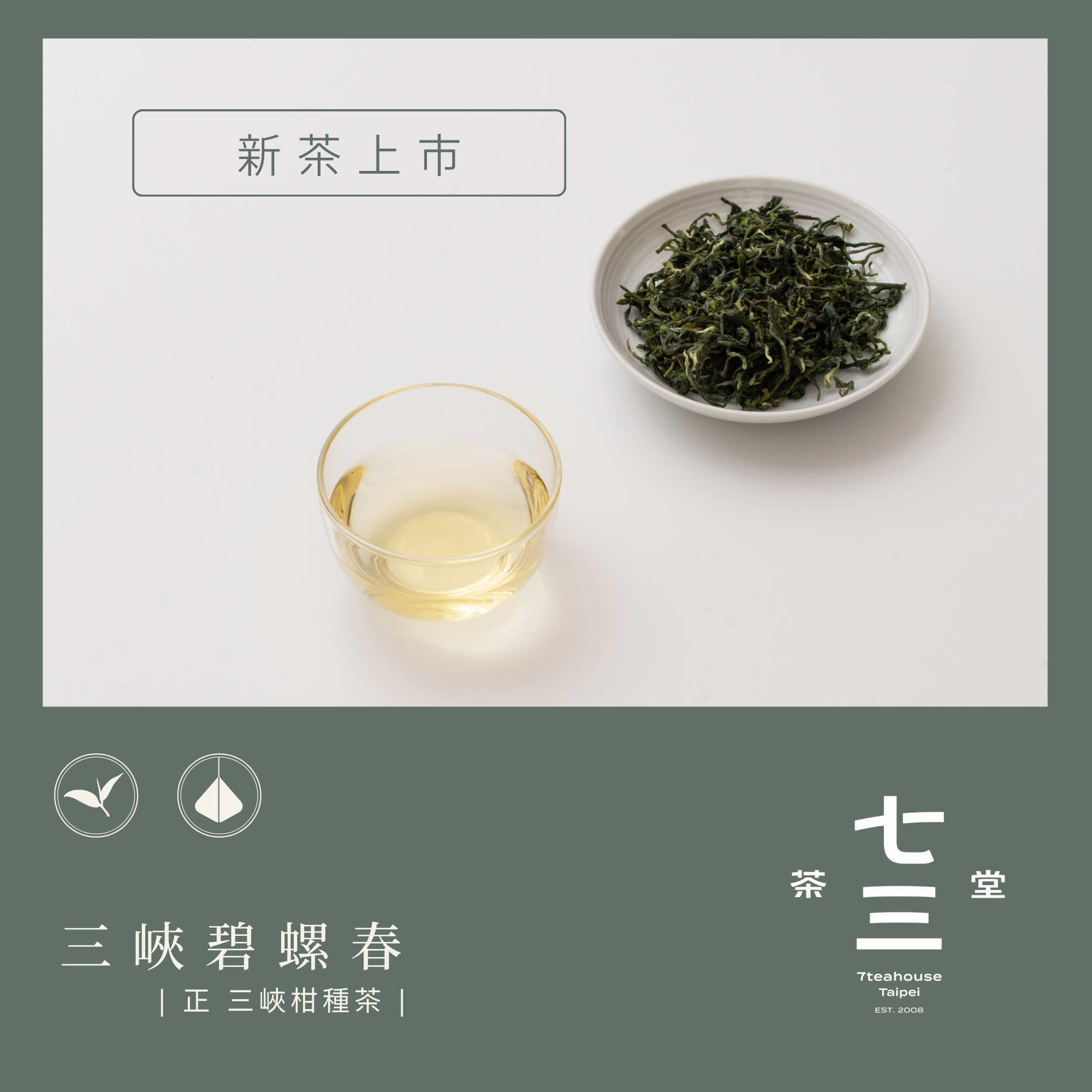 四季中,春、冬兩季才能製作出一年中最上選的〈三峽碧螺春〉,而 七三茶堂 只做春、冬。〈三峽碧螺春〉水色淨透、淡綠、茶感鮮爽收斂,鮮活風味飽滿充足。香氣上,以在地茶樹種「青心柑種」製作的〈三峽碧螺春〉有獨特輕揚的綠豆仁、海苔、甘蔗...等草本調宜人香氣。