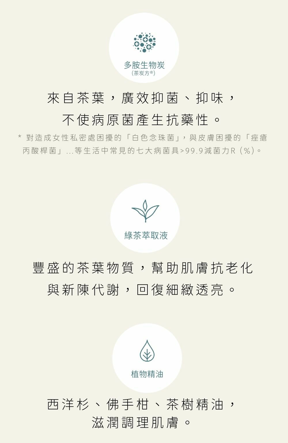 物理廣效抑菌防護,似茶溫和而無侵略性的潔淨感。