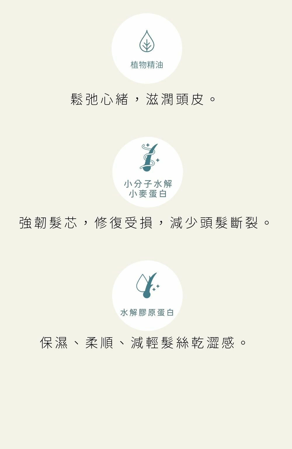 ★ 水解膠原蛋白:保濕、柔順,減輕髮絲乾澀感。